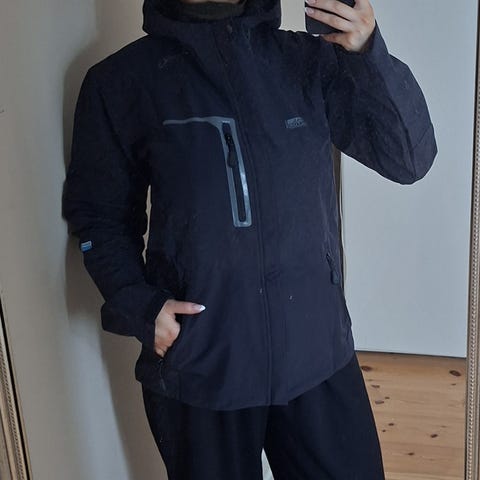 Softshell, str. L, Chill Factor Equipment, sort, God men brugt, Revolutionerende jakke, som er imprægneret med nanopartikler, hvilket gør den smuds, vand og lugtafvisende. Jakken har firevejsstretch for maksimal bevægelighed og komfort. Jakken er flot sort med mørkegrå skuldre og gule detaljer. Ikke brugt særligt meget.