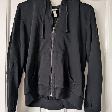 H&M hoidie i hvid farve, størrelse S, lavet af bomuld. Blusen er designet til kvinder og har en hætte samt en lomme foran. Materialet består af bomuld, hvilket giver en blød og behagelig pasform.