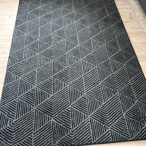 Gulvtæppe fra IKEA. Modellen er formentlig LINDKNUD, hvor det er et plasticlignende underlag.