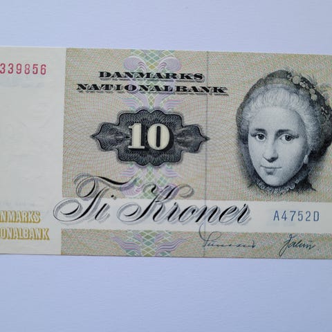 Danmark, 10 kr. seddel - 1972-serien. A 4752B, 1339854. Sedlen uden folder.