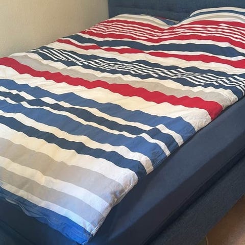 Flot og velholdt seng fra ILVA i størrelsen 180 x 200 cm. Sengen har en mørk polstret ramme og fremstår i god stand. Perfekt til soveværelset med god komfort og et stilrent udtryk.