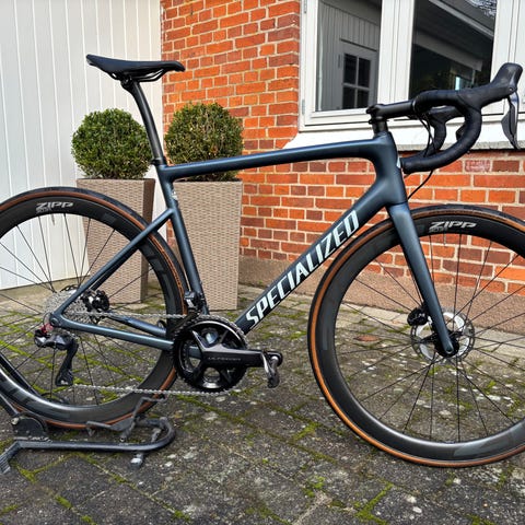 Velholdt aero racer, sort, carbon, integreret frempind, disc brakes. Ultegra di2. Medium (mand 180 cm + -) clincher, slange. Med oplader til gear system. Super velkørende.