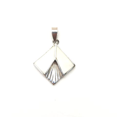 Elegant sterling sølv vedhæng med et unikt, cremefarvet motiv. Perfekt til at tilføje et stilfuldt touch til ethvert outfit. På bagsiden er der stemplet 925 SL. Vedhænget måler 22 mm lang og fremstår med brugs spor.