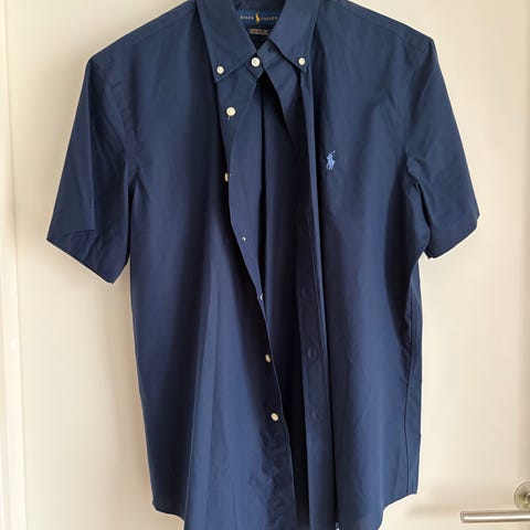 Blå skjorte i hør fra Ralph Lauren. Størrelse L, Slim Fit.