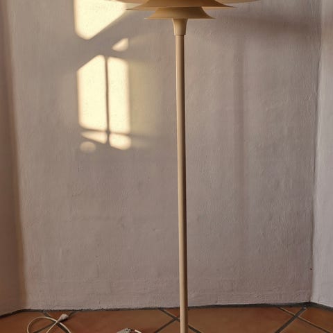 Smuk retro Lyfa Adina standerlampe sælge billigt, da den er gulnet lidt med tiden.