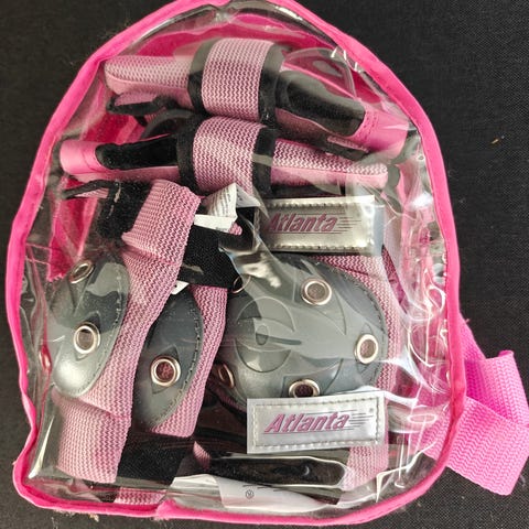 Atlanta rulleskøjter beskyttelsessæt bestående af knæ-, albue- og håndledsbeskyttere. Sættet leveres med en netpose