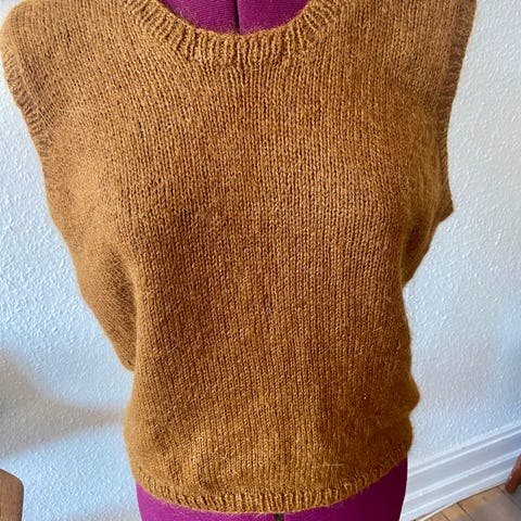 Superdejlig hjemmestrikket vest i blød angora uld. Har ingen skader og er aldrig blevet vasket.
