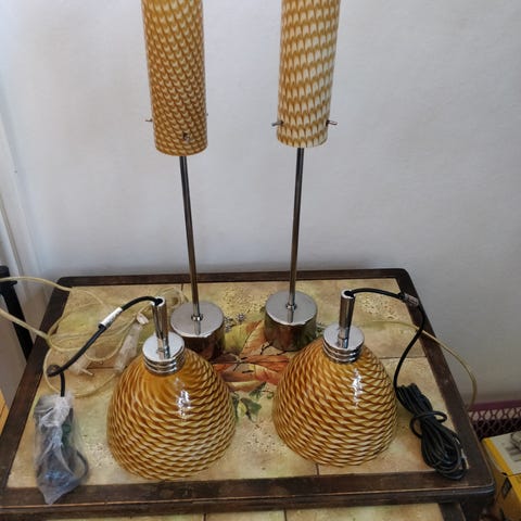 Herstal lampesæt bestående af tre lamper i forskellig højde (ca 30, 24 og 20 cm). Lampeskærmene er lavet af hvidt glas med en cylindrisk form. Lampesættet kan anvendes til dekorativ belysning i hjemmet.