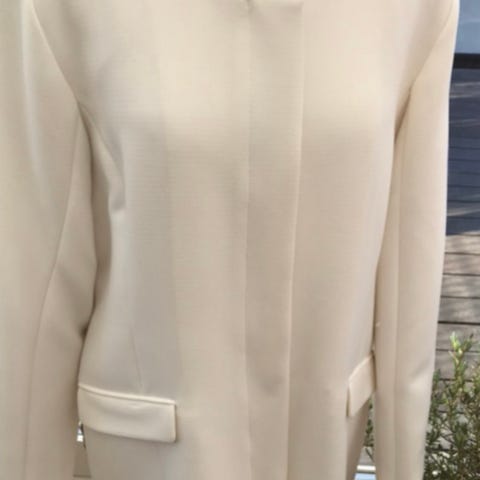 H&M Frakke i størrelse XL med et brystmål på cirka 130 cm og en længde på cirka 100 cm, sort farve og lavet af 100% polyester. Jakken har en lynlås brystlomme i højre side se billede 1, desuden 2 lommer i hver side en almindelig og en lynlåslomme se billede 2. Frakken har også skjult bindebælte som kan stramme frakken i taljen se billede 2. Frakken lukkes med både lynlås og trykknapper se billede 4. Endelig er der hætte i kraven, du kan se lynlåse på billede 3. Blusen medfølger ikke.