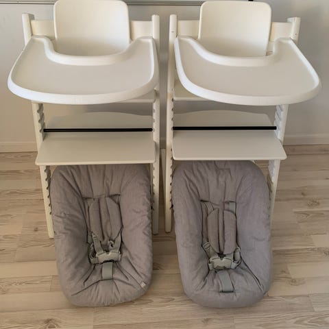 Inklusive newborn set, baby set inkl. sele , bordplade i sort plast og 2 ryghynder.
