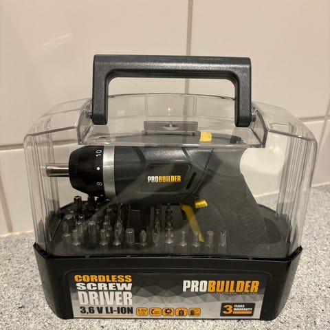 Jeg har en batteri skrugemaskine 4 v tilsalg med lader og bitzer det hele i en praktisk lille handi kuffert sælges fra struer