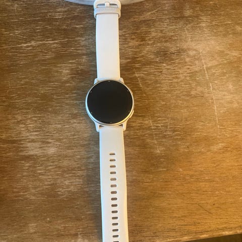 Garmin Vivoactive 5 smartwatch med sort rem. Uret har en rund skærm og flere udskiftelige remme. Velegnet til daglig brug og træning.
