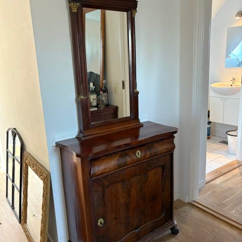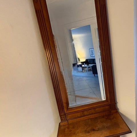 Entremøbel med spejl og svungne krydsben.