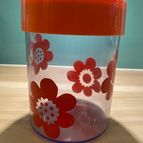 Erik Kold Retro Opbevaringskrukker med orange låg og blomsterprint