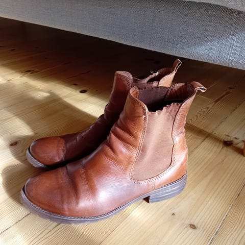 Støvler af brunt læder. Mie og Harald Nielsen.