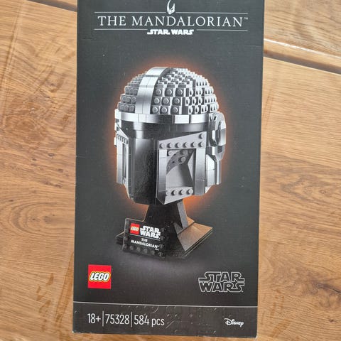 LEGO Star Wars Mandalorianerens N-1-stjernejager. 75325. Bygget og stået på en hylde. Alt som ses følger med.
