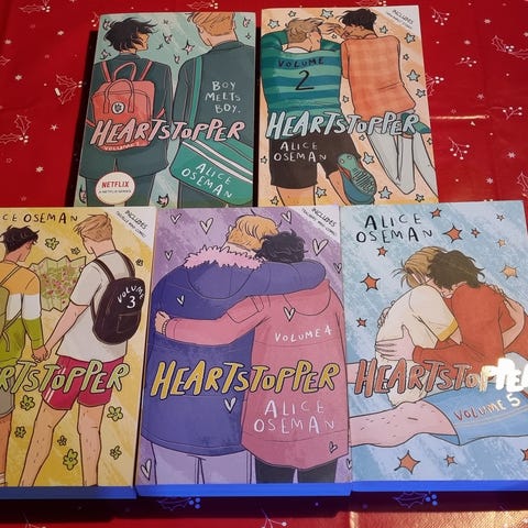 Alice Oseman Heartstopper bogserie bestående af 3 bind. Serien indeholder historier om venskab og kærlighed med illustrationer. Bøgerne er på engelsk og passer til unge læsere.