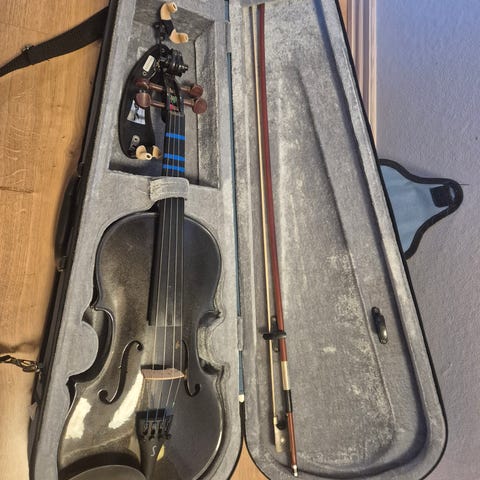 Cremona violin leveres med en pink taske og bue. Violinens krop og tilbehør er i pink farve. Velegnet til begyndere og musikudøvere, der ønsker et farverigt instrument.3/4. Næsten ubrugt.