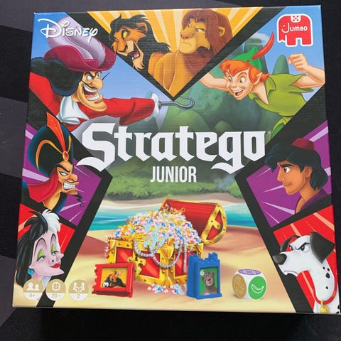 Disney Stratego Junior brætspil med tema fra Disney-figurer. Spillet er designet til børn og indeholder karakterer fra forskellige Disney-universer. Formål er strategisk spil mellem to spillere.