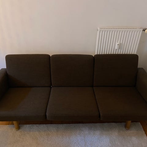 Stellet er nyistandsat og olieret. Hynderne er nye og nybetrukket hos dansk professionel møbelpolstrer i Danmark med Hallingdal stof fra Kvadrat.