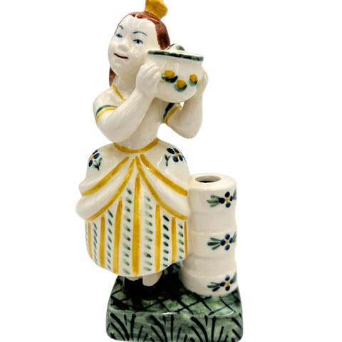 Nr.4. Aluminia Børnehjælpsdagsfigur fra 1947 også kendt som "Konen med æggene. Formgivet af Hans Henrik Hansen.