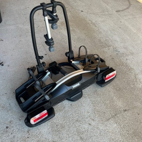Thule VeloCompact 924 cykelholer, max. belastning på 46 kg for to cykler. Har været brugt i to timer. Har ikke faktura, købt hos THansen i Skanderborg.