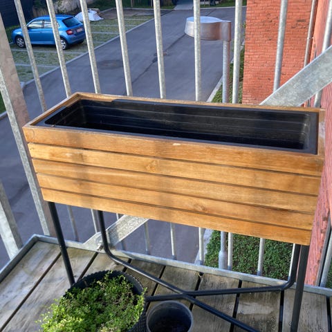 Rigtig fin plantekasse. Kan både stå inde og ude hvis den skal stå ude skal der nok bruges Hul til at vandet kan løbe ud.