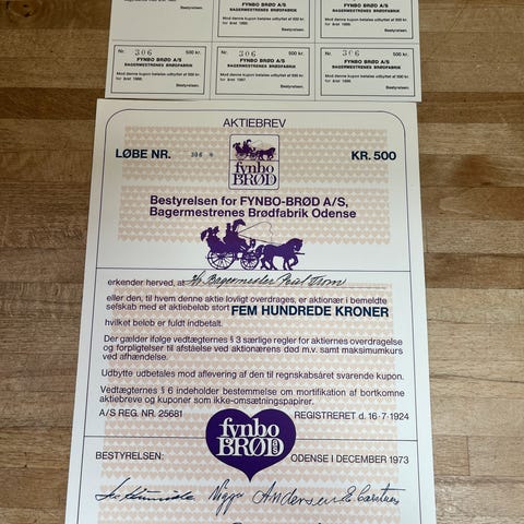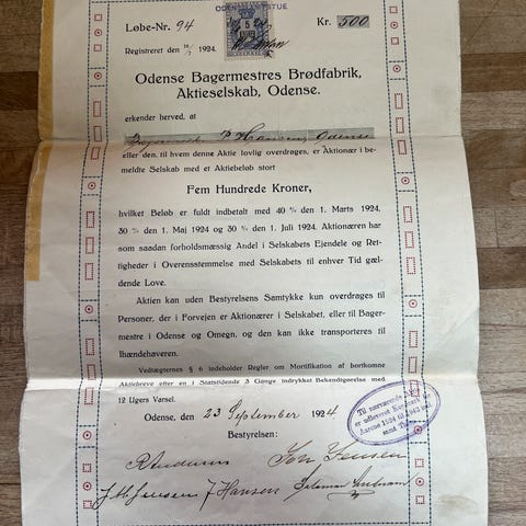 Fra en svunden tid. Aktiebrev i Ringkjøbing Bank. Intet kuponark.
