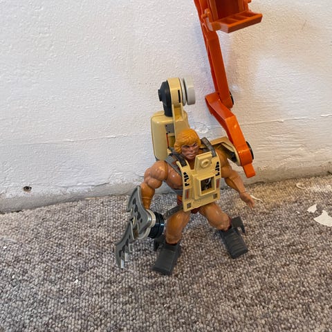 Actionfigur med brun pels, sort fodtøj og grøn bue. Figuren har en gul sele og detaljeret hår. Egnet til samling eller leg.