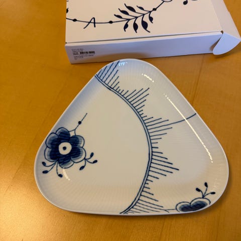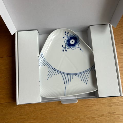 Royal Copenhagen blue fluted mega - triangle dish 23cm sælges, da jeg ikke får den brugt.