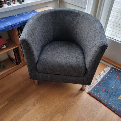 Lænestol med pude som ny. Giv et bud på den?