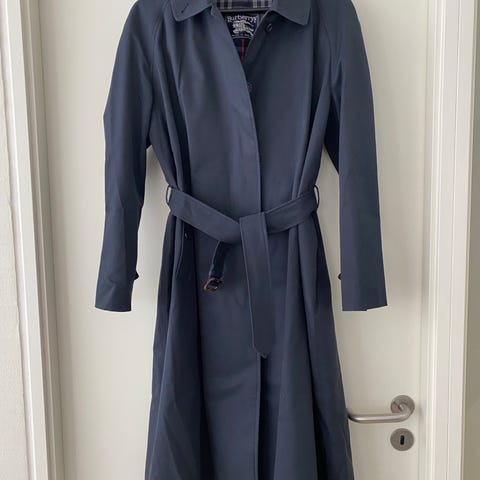 Super lækker og velholdt Burberry trenchcoat i mørkeblå. Der er kun brugsspor på spænderne (se billede). Nok en M/38. Der følger et uldfor med, der kan knappes af og på. Kan sendes.
