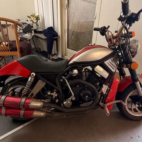 Starter og kører fint. Kort/lang lys,blinklys og horn virker, elstart ikke testet da batteriet er fladt.