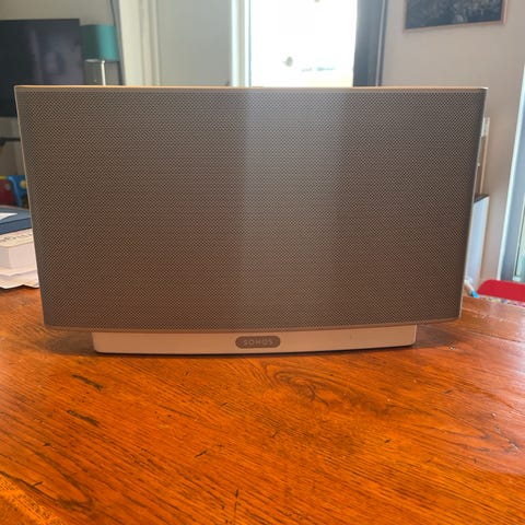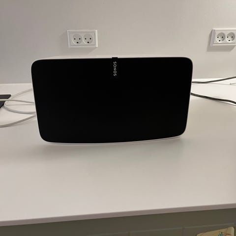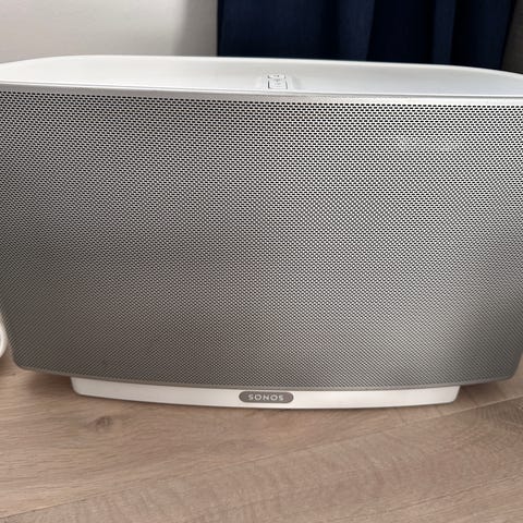 Sonos højttaler i hvid farve. Designet til at levere lyd i høj kvalitet til forskellige rum. Passer til brug i hjemmet eller kontoret.