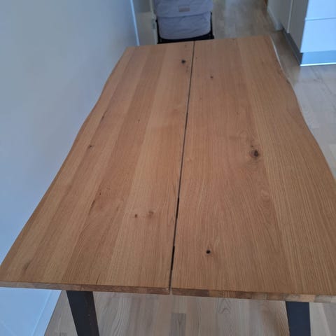 Spisebord fra Jysk i størrelse 90x160. Vi har haft den siden midt september, den står helt som ny uden ridser eller mærker! Oprigtig pris 3.200kr