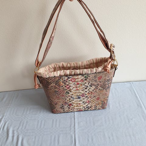 Flot hvid clutch med et smukkeste mønster indeni