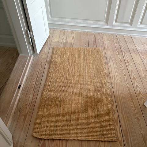 Har et vævet naturligt udseende og derfor ikke helt stramt vævet alle steder. Sælges grundet flytning, og jeg har desværre ikke plads til det mit nye sted.