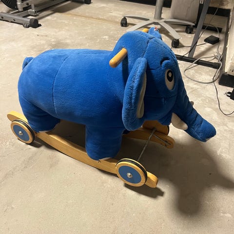 Super fint elefant der kan gynge og køre .Den siger også som en elefant.Fed julegave