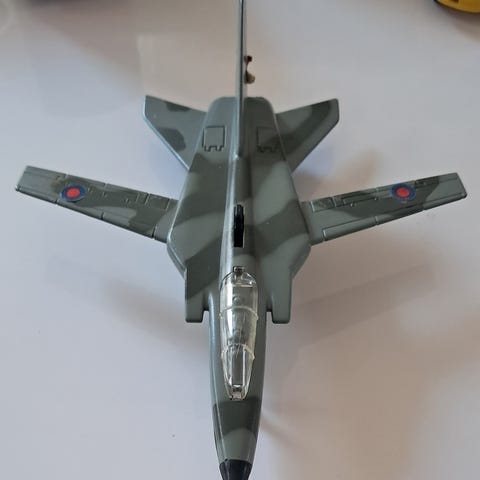 Den er lavet af trykstøbt metal og bærer registreringen G-ADUY.