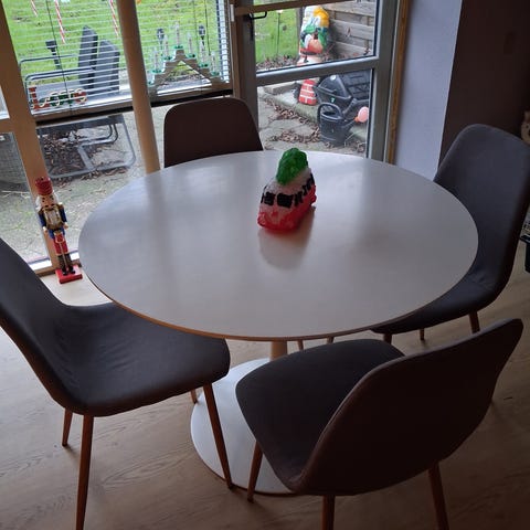 Rundt spisebord med stol