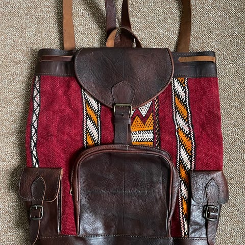 Rygsæk fra mærket Lundi Paris. Rygsækken har flere rum og lommer til organisering af ejendele. Den har justerbare skulderstropper og et stilrent design. Jeg har fået den i gave men dsv aldrig brugt den. Der medfører en separat lille “compact toiletry bag”.