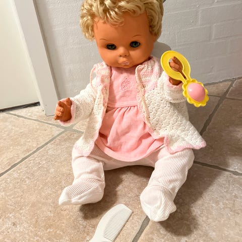 Andet, Stor gammel dukke 52cm tøjet FØLGER med, Stor gammel charmerende dukke størrelse ca 52cm tøjet som dukken har på følger med. Sender MOD betaling af porto