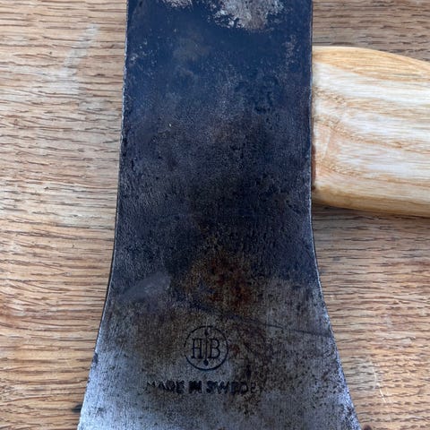 Håndøkse fra svenske Hults Bruk. 1000g hovedvægt monteret et skaft i ask på 450mm.