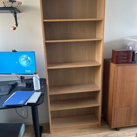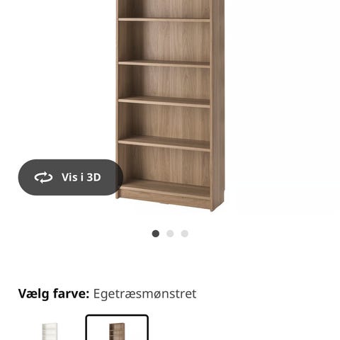 Billy reol kun halvt år gammel, så den er som god som ny. Kan både sættes i forlængelse af hinanden eller bruges i hjørne. Jeg har en ekstra af de små reoler som kan sættes på, så reolen samlet bliver 2 meter.