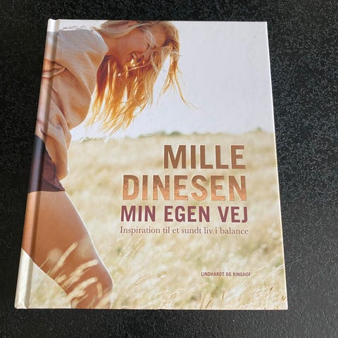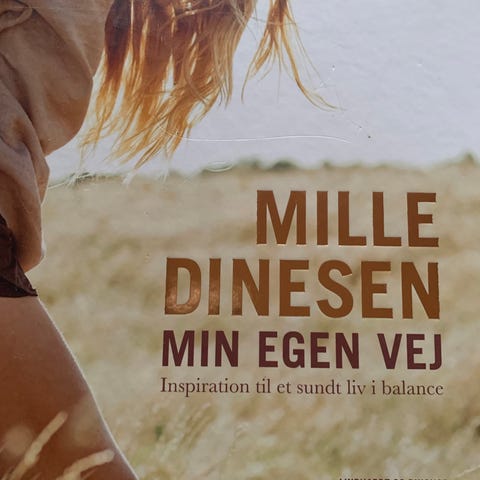 Mille Dinesen Min Egen Vej bog med inspiration til et mere lyst liv. Indeholder personlige fortællinger og refleksioner. Bogens omslag har et billede af forfatteren i naturligt miljø.