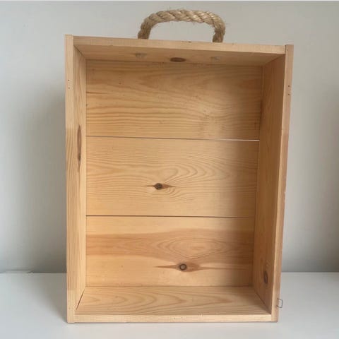 Mørk trækasse, som f.eks. kan bruges til opbevaring af vinflaske, som "gaveæske". Jeg har selv brugt trækassen til smykker. Måler ca.: længde 38 cm x dybde 12 x højde 11 cm.