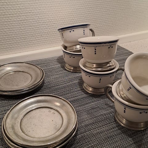 Porsgrunn, Det Riflede, kaffekop m tallerken, 6 stk