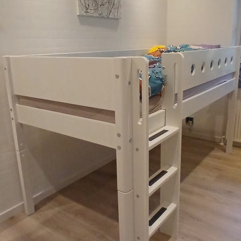 Kan bygges til halvhøj eller høj seng. I hvid farve. Billigt. Har 2 stk. Og en halvhøj seng. Kan aftales forhandles hvis du køber flere. Ellers pris 1000 per seng.