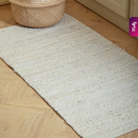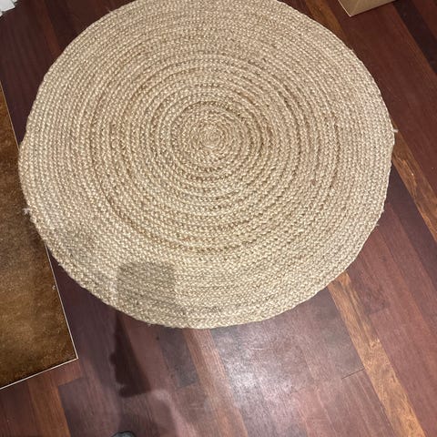 Håndflettet tæppe i naturlig jute. Ø125. Farve natur. Ikke-ryger hjem.