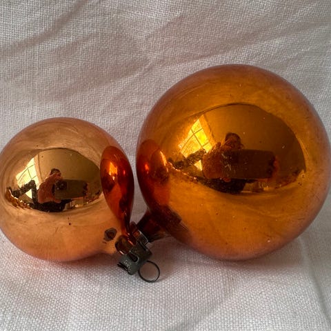 Smukkeste gamle glas julekugler i de lækreste guld farvenuancer. Med ophæng til at hænge på juletræet.